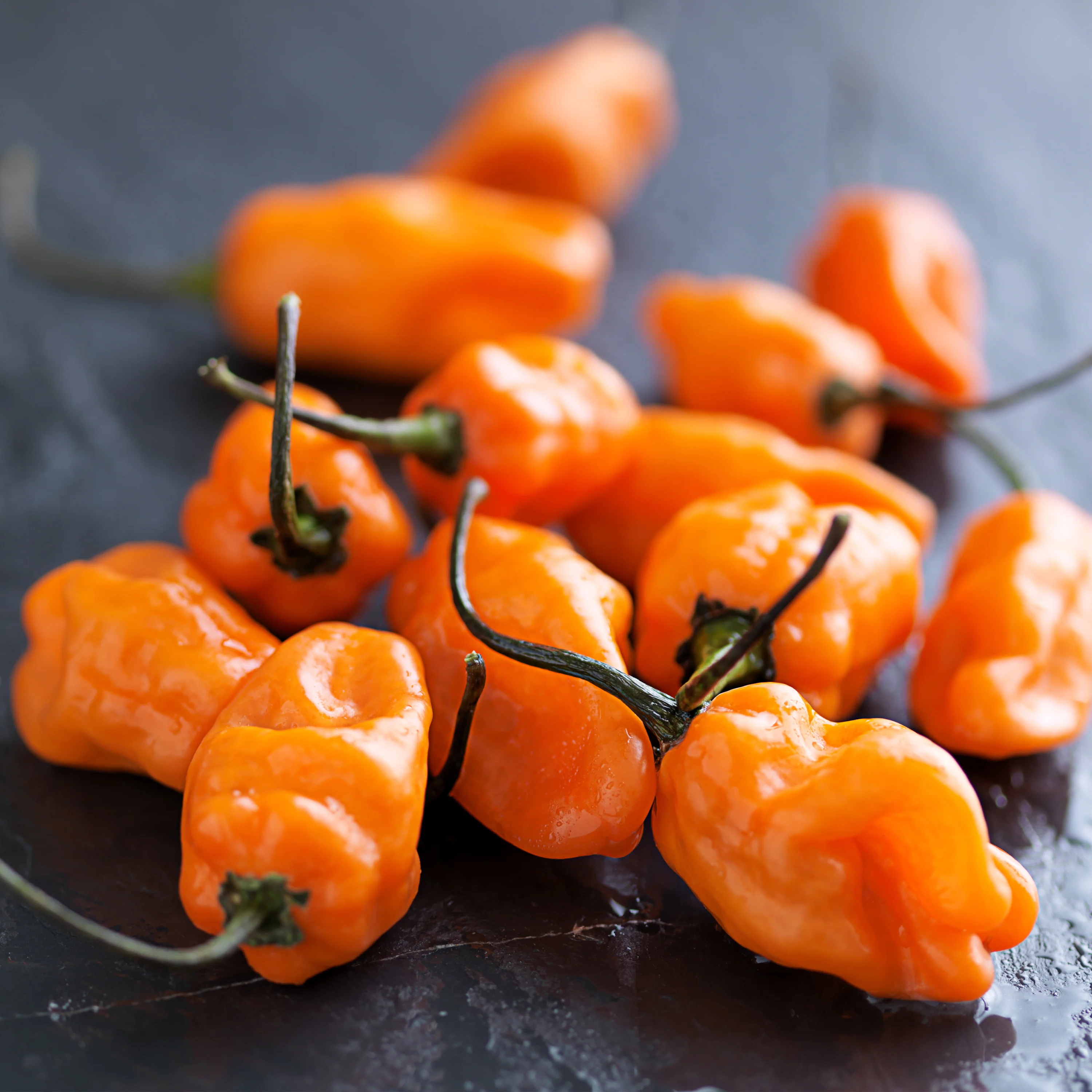One of the most potent hot peppers- 100 times hotter than Jalapeño! Great for hot sauces and basting. Wrinkled, tapered little fruit turn from green to orange. Bear very well in hot weather. Grows well in containers. Tapered little fruit turn from green to orange. Bear very well in hot weather.