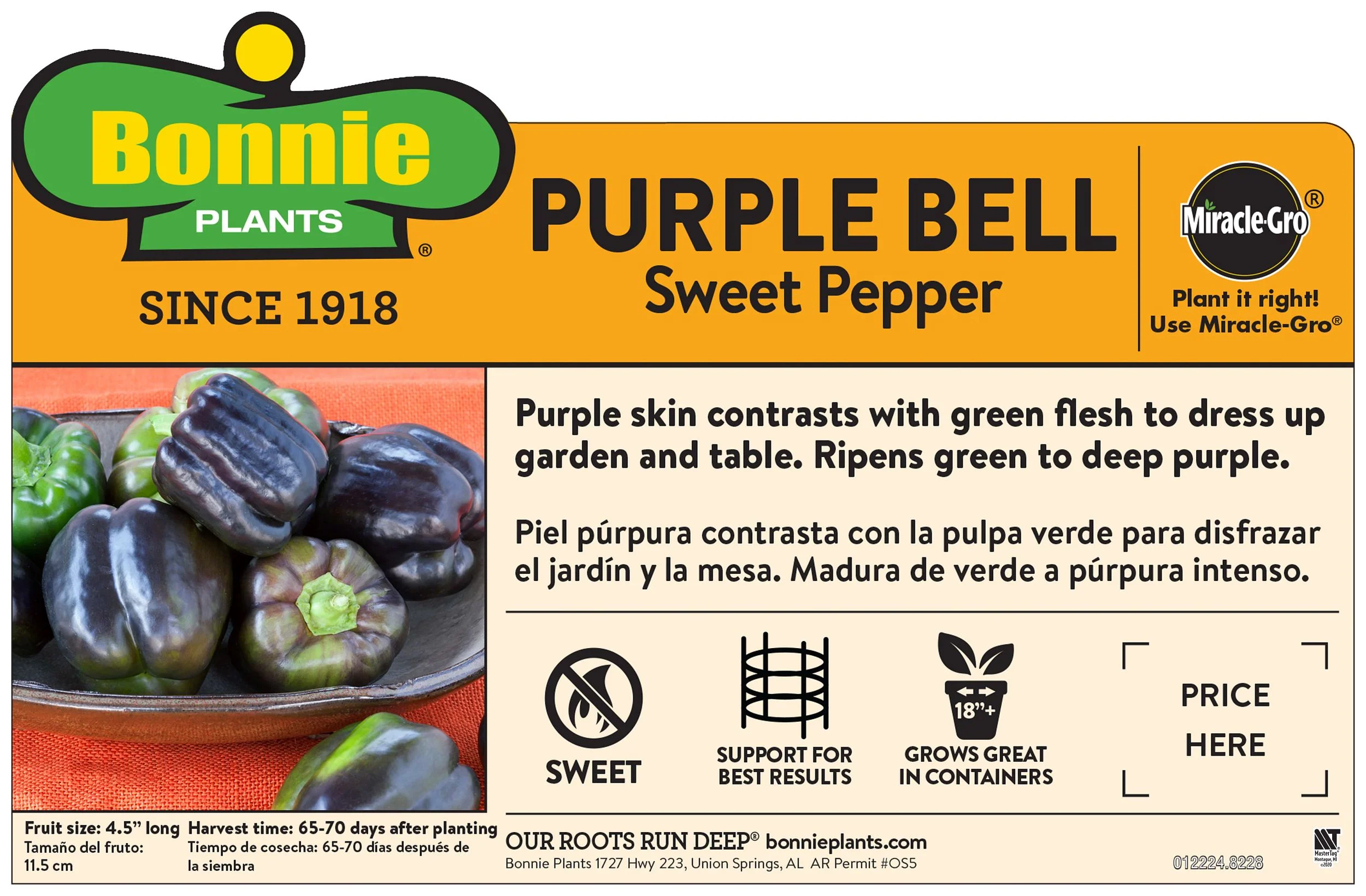 These purple peppers are guaranteed to spark conversation in the garden and on a dinner plate. Colored a rich, deep purple, they have terrific sweet bell flavor to go with their good looks. Peppers start green, shift to white, and then develop purple stripes that eventually cover the whole fruit. The purple skin contrasts beautifully with lime green flesh. It's a stunning combination that really dresses up fresh veggie trays, sandwiches, salads, and other dishes. This pepper tolerates high heat and humidity and thrives in Southern gardens. Plants grow 18 to 24 inches tall and bear fruit until frost. Space plants 20 to 24 inches apart. Merlot is resistant to tobacco mosaic virus and bacterial leaf spot races 1, 2, and 3.